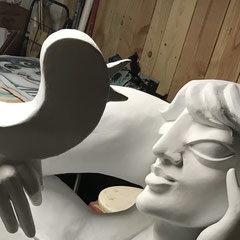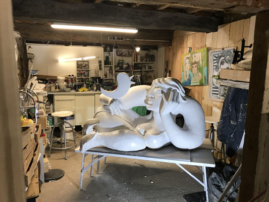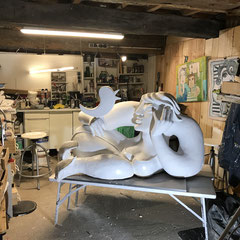 Du polystyrène au plâtre, en passant par la mousse expansé et en revenant souvent à la terre...Je vogue de l'un à l'autre en faisant surgir des personnages burlesques, haut en couleur qui traduise souvent mon état d'esprit.